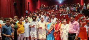 Kuldeep Sharma@बिलासपुर– रामा मेग्नेटो मॉल में “द केरला स्टोरी” फिल्मछत्तीसगढ के पूर्व विधानसभा अध्यक्ष धरमलाल कौशिक ने विधानसभा बिल्हा के सभी कार्यकर्ताओं के साथ मिलकर देखी। इस दौरान उन्होनें कहा कि यह फिल्म कोई आम फिल्म नहीं है यह फिल्म एक सत्य घटना पर आधरित फिल्म है जो आंतकी साजिश को पर्दाफाश करता है। और जिस प्रकार से केरल में जो घटना घटी है, जो आंतकवाद बढ़ा है जिससे सामान्य जन प्रताड़ित हुए उन सारी चिजों को सामाहित करने का प्रयास इस फिल्म में किया गया है। उन्होनें कहा कि जिस प्रकार से पूरे देश में इस फिल्म को लोग पंसद कर रहे हैं और देखने जा रहे हैं और कई प्रदेशों में इस फिल्म के लिये कर मुक्त किया गया है मुख्यमंत्री भूपेश बघेल से मांग करते है कि छत्तीसगढ़ में भी इस फिल्म के लिये टैक्स मांफ किया जाए जिससे अधिक से अधिक लोग इसे देख सके।